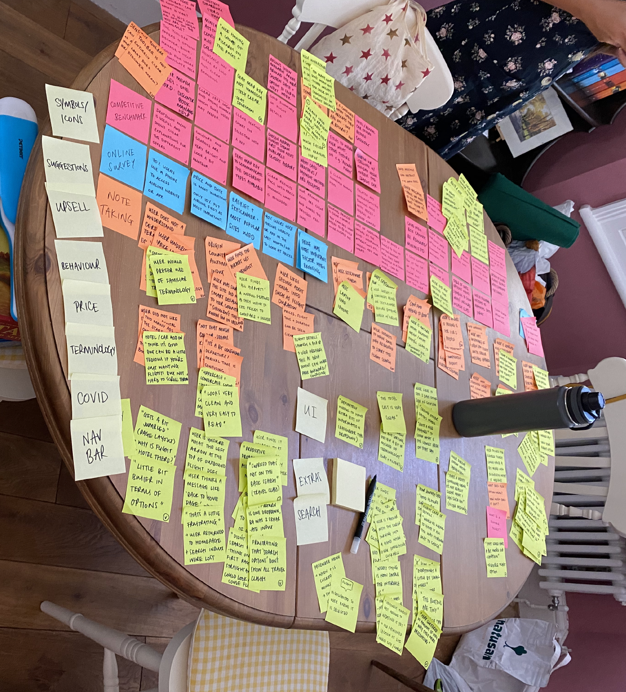 The next step in the process was to apply some structure to the qualitative research data collected so far. This meant collating all research conducted up until this point - competitive benchmarking, online surveys and usability tests and then reviewing it with a helper.